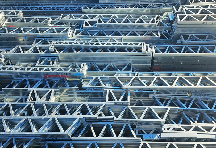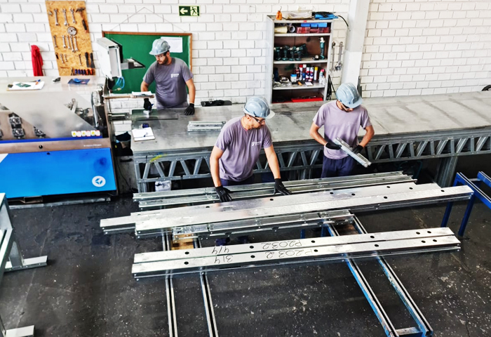 Utilizing BIM technology for project detailing and documentation, we create print files that are sent to our roll formers. Production takes place swiftly and accurately: each day, we can produce up to 8 tons of profiles with millimeter precision, all labeled and pre-drilled.